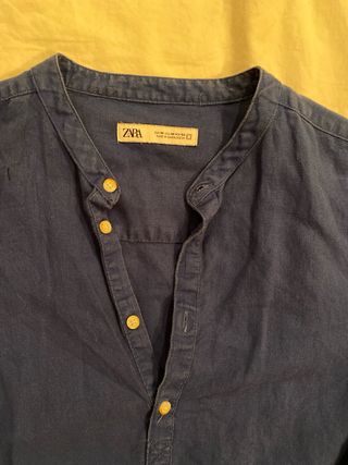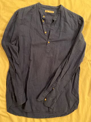 Camisa Lino Zara Azul Talla S