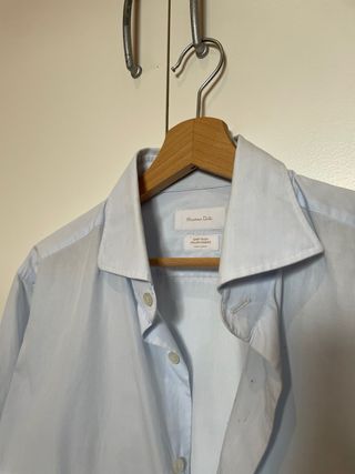 Camisa de vestir de Massimo Dutti en color azul claro. Confeccionada con tejido italiano. - Cuello clásico. - Cierre de botones. - Manga larga.
