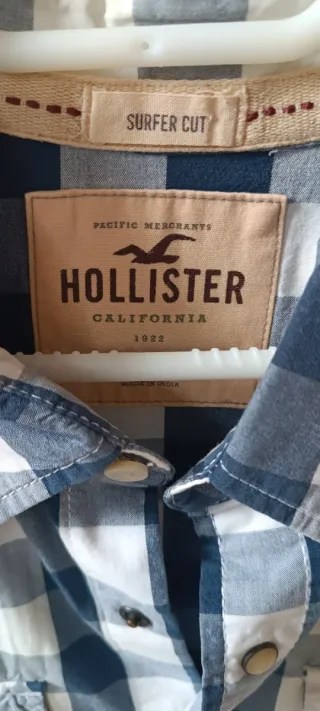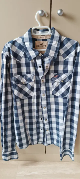 Camisa Hollister cuadros azul y blanco Talla L