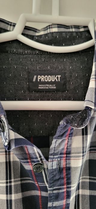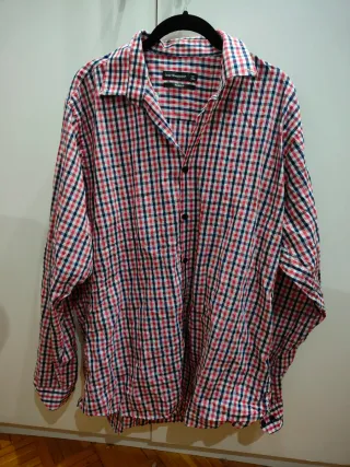 Camisa de manga corta con estampado de cuadros. - Cuello button-down. - Bolsillo en el pecho. - Cierre de botones. - Corte ajustado. * Venta en persona. Zona Metro Sant Martí.