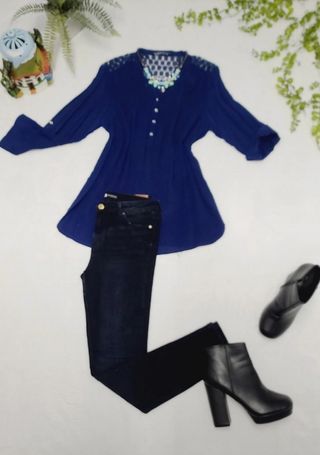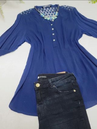 Camisa color azul con el detalle del encaje en los hombros y la espalda. Es para mujer chica talla L #kismamujer40