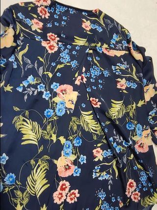 Camisa color azul con estampado floral en diferentes colores verde rosa Turquesa beige amarillo y rojo. Es para mujer chica talla S #kismamujer36
