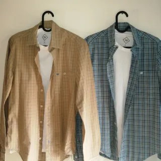 Camisa de manga larga con un diseño de cuadros clásico. - Cuadros en tonos azules, marrones y blancos. - Cuello camisero. - Cierre de botones en la parte delantera. Precio negociable.