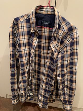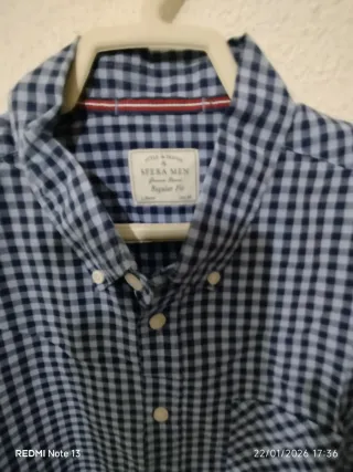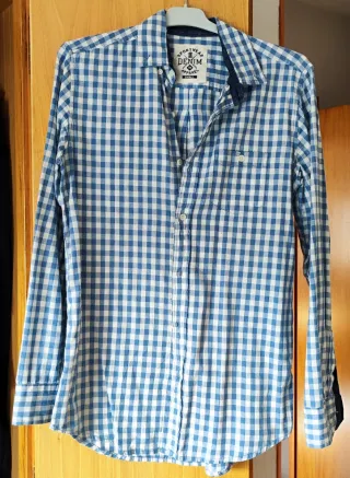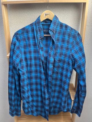Camisa de manga francesa con un diseño de rayas verticales y horizontales en azul y blanco. Es una prenda versátil y cómoda. - Cuello camisero. - Cierre de botones. - Puños abotonados. Entrego en la plaza de Tirso de Molina o glorieta de embajadores. PRECIO NO NEGOCIABLE. PAGO EN EFECTIVO.