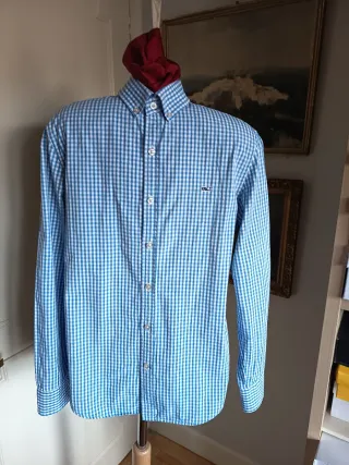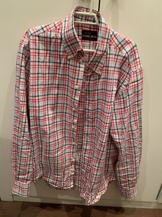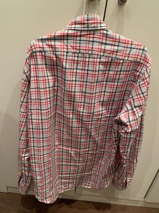 Camisa McGregor (New York 1921) de manga larga con diseño de cuadros. Cuello con botones. Doble boton en puño mas boton de ajuste de manga. Boton en parte trasera de cuello. Trabilla en parte trasera para colgar prenda. 100% algodon (Luxury Fine Cotton). Talla M. Moda hombre. Colores en tonos azul y rojo. Perfecto estado. 25 euros