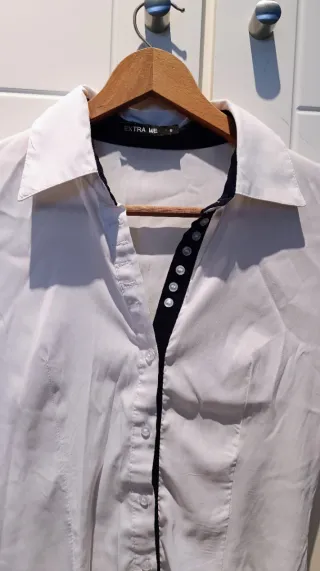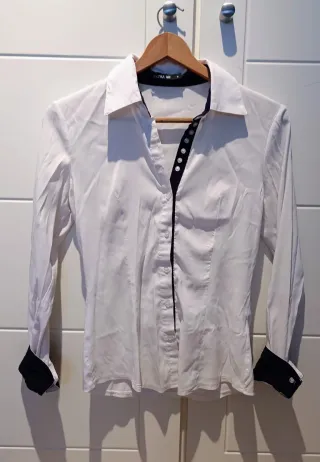 Camisa blanca entallada con puños y solapa interior en color azul marino. Talla S