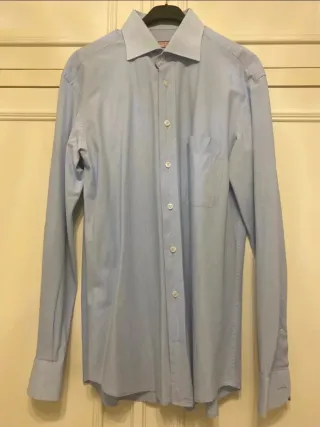 Camisa de manga larga en tono azul claro celeste - Cierre de botones. - Talla XS de hombre (XL de niño).