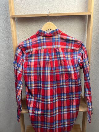Camisa de manga larga con estampado de cuadros. - Cuadros en tonos rojos, azules y verdes. - Cuello abotonado. - Talla XS.