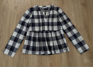 Camisa de cuadros con un diseño moderno y juvenil. - Manga larga. - Cuello mao. - Cierre de botones. - Corte babydoll con vuelo. De la marca Amichi. Talla S. Camisa cuadros azul marino y blanco. Algodón. Puesta 2 veces, en perfecto estado.
