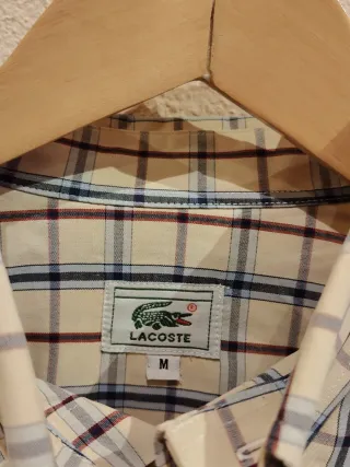Camisa de manga larga con un diseño de cuadros clásico. - Cuello abotonado. - Tejido ligero y transpirable. - Detalle de logo bordado en el pecho. Colores beige, rojo y azul Talla m, más L por sus medidsd de hombro a hombro 48 cm , largo 75 cm ,de axila a axila 56 cm #lacoste