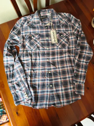 Camisa de cuadros de manga larga. Con etiqueta, a estrenar. - Cuello camisero. - Cierre de botones. - Dos bolsillos en el pecho. - Puños abotonados.