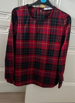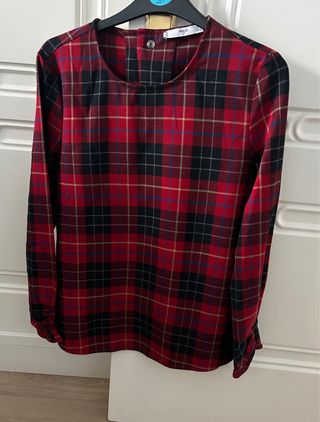 Camisa de cuadros de Mango con manga 3/4. Talla S NUEVO sin etiqueta. - Diseño de cuadros en rojo y azul. - Cierre con botón en la parte trasera del cuello. #mango #new #mng #cuadros #fashion #blouse #top