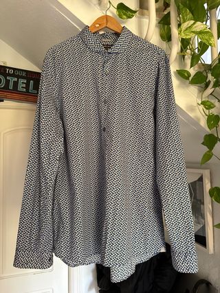 Camisa de manga larga con un estampado floral sobre fondo azul. - Cuello camisero. - Cierre de botones. - Logo bordado en el pecho. -Muy bonita y en perfecto estado.