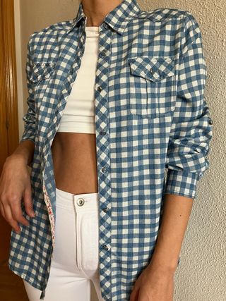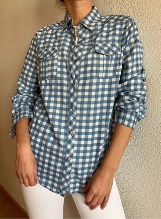 Camisa de cuadros de H&M. - Diseño a cuadros en tonos azules y blancos. - Bolsillo en el pecho.