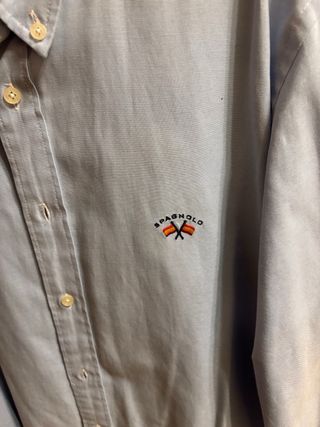 Camisa de manga larga Spagnolo en color azul. - Cuello camisero. - Cierre de botones. - Logo bordado en el pecho. - Bandera España en la espalda. - Talla 3 (equivale a una M). - En muy buen estado