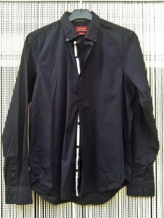 Camisa de manga larga de Zara Man en color azul oscuro. Presenta un diseño clásico con cuello abotonado y cierre de botones. - Cuello con botones. - Puños con botones.