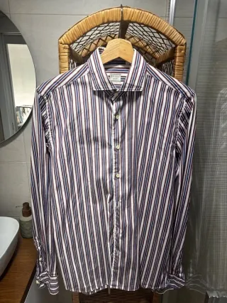 Camisa de manga larga con un diseño clásico de rayas verticales. - Cuello camisero. - Bolsillo en el pecho. - Logo de la marca bordado. Sin estrenar, viene con la etiqueta