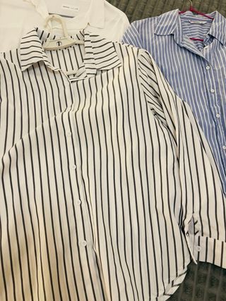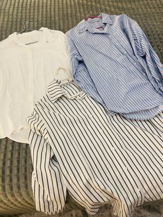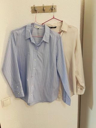 Conjunto de dos camisas para mujer talla M ambas . Se realizan lotes ropa en mi perfil - Una camisa de rayas azules, nueva a estrenar de Lefties - Una camisa lisa color blanco , usada . De zara