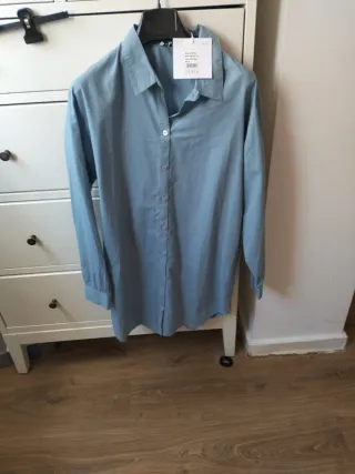 🔷 Elegancia relajada con corte clásico 📌 Talla: EUR M 📌 Estado: Excelente 📌 Color: Azul claro 📌 Marca: ZARA 📌 Detalles: Bolsillo en el pecho, botones blancos, cuello abotonado. Perfecta para estilos frescos y versátiles: desde oficina hasta salidas informales 🧵🌤️