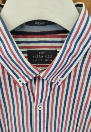 Camisa de rayas de la marca Sfera en muy buen estado. - Diseño de rayas verticales en azul, blanco y rojo. - Talla S. Mira mi perfil, descuento por la compra de dos o más artículos!