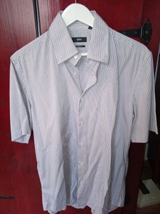 Camisa Hugo Boss talla L Slim fit . Tejido fino de verano. azul