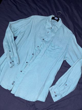 Camisa vaquera de manga larga con botones. Camisa vaquera Stradivarius talla S . Medidas aproximadas cintura 38 sisa a sisa 43 - Dos bolsillos en el pecho. - Costuras en contraste.