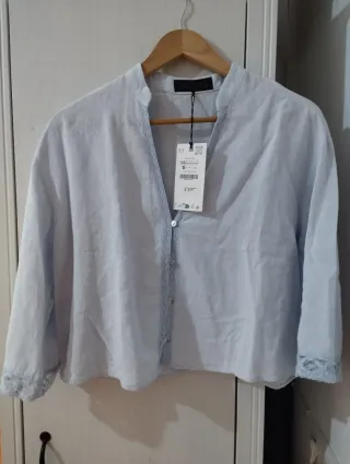 Camisa de Zara con un diseño elegante y detalles de encaje. - Cuello mao. - Cierre de botones. - Mangas largas con puños de encaje. - Bajo con detalle de encaje.