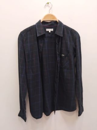Camisa de manga larga para hombre / caballero con un diseño a cuadros. - Manga larga - Talla 36 - Cuadros en tonos azules y rojos. - Logo de Lacoste bordado en el bolsillo.