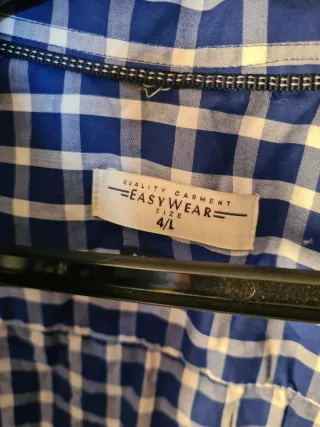 Camisa manga larga a cuadros de Easy Wear. Cuadros de color rojo y azul. Talla L. Estilo regular fit. Material 100% algodón. En muy buen estado. Medidas: - Ancho de hombros: 47 cm. - Axila a axila: 56'50 cm. - Largo: 72 cm.