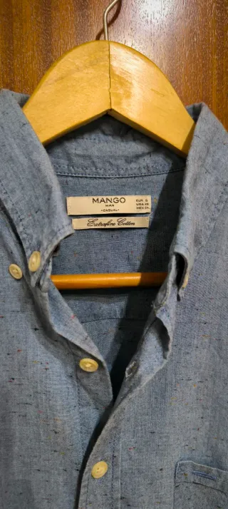 Camisa azul con jaspeado de colores de la marca Mango. Talla S. 100% algodón. Extrafine cotton. Usada una vez.