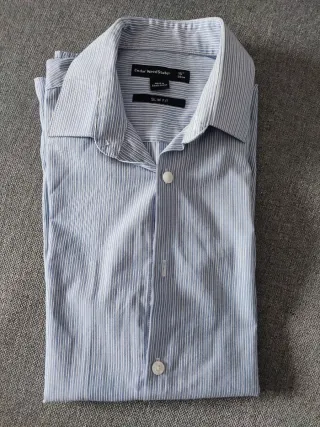 Camisa de vestir de la marca Tuxedo New York. - Color azul. - Talla M (equivalente a 38-40 / 48-50). - Diseño de rayas finas.