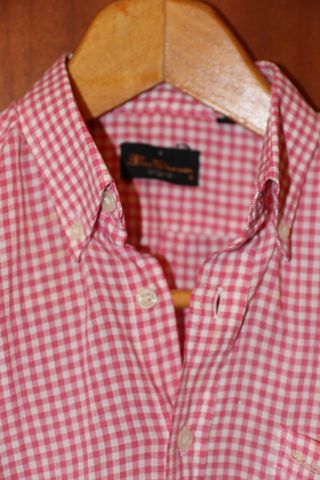 Camisa vintage Ben Sherman en talla S, rosa-blanco, manga corta. Muy buen estado, sólo un poco usado. Medidas: - axila a axila: 49 cm - hombro a hombro: 39 cm