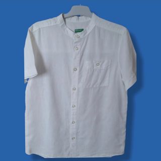 Camisa blanca de lino manga corta. Cuello mao. BENETTON. Pone 10-11, pero es más bien 9‐10. Queda muy chula. La puedes ver sin compromiso.