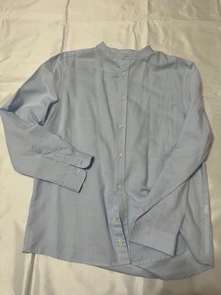 Camisa azul cuello mao