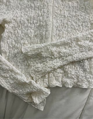Bonita camisa de Bershka en color beige. - Diseño con volantes en la parte delantera y en las mangas. - Cuello redondo. - Manga larga.
