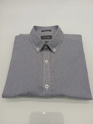 Camisa de manga larga con un discreto estampado. - Talla 41, equivalente a M. - Cuello clásico. - Cierre de botones. - Detalle bordado en el pecho.