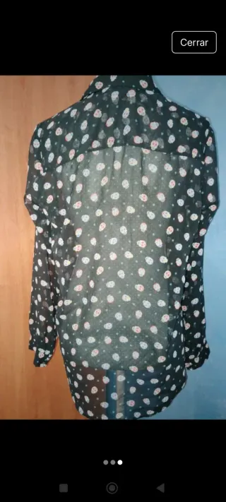 Preciosa camisa de manga larga con estampado de flores azules y blancas. Está en muy buen estado y lista para usar. - Tiene un parche en el codo. - Es de algodón.