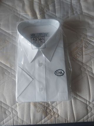 Camisa en perfecto estado,sin usar , cuello sin botones, largo 79 cm, largo manga 66cm, contorno de pecho 1,40 cm, talla 45