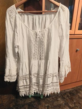 COMPRA 2 PIEZAS DE ROPA Y PAGA LA MITAD DE LA MÁS BARATA. Camisa ibicenca. Original de Ibiza. Talla U. Tiene un pequeño descosido( se ve en última foto, que arreglas en nada. Preciosa.