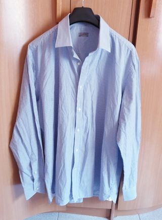 Preciosa camisa de hombre a cuadros en tonos azules y blancos. Es de manga larga y tiene un corte clásico. - Elegante y versátil. - Ideal para ocasiones formales e informales. - Perfecta para el trabajo o una salida de fin de semana.