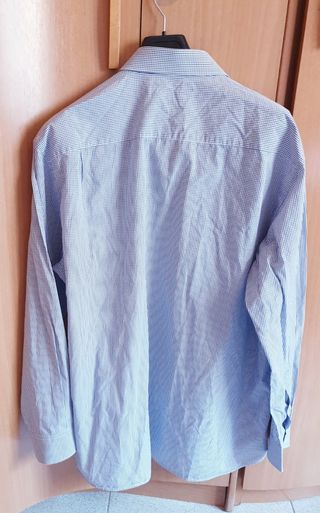 Tala 42 equivale a talla Xll. Camisa fresca ideal para el verano. Manga corta. Diseño a cuadros. Cuello clásico. Bolsillo en el pecho. Botones blancos.