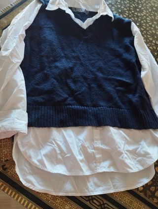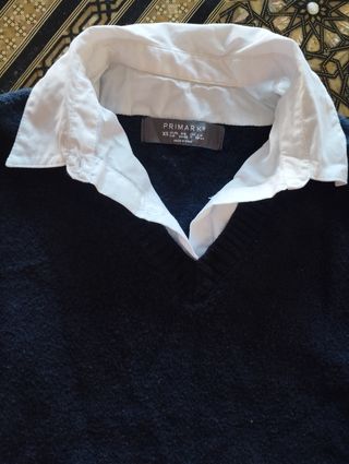 Jersey de pico con cuello de camisa blanco. Para chica - Cuello de camisa blanco. - Diseño de pico.