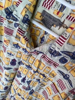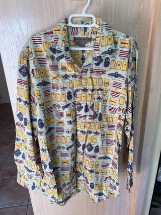 Camisa de manga larga con un diseño llamativo y original. - Estampado militar con banderas y condecoraciones. - Cuello camisero. - Cierre de botones.