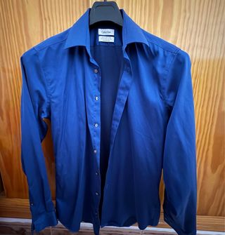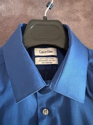 Camisa de vestir Calvin Klein en color azul brillante. Corte slim fit para un ajuste moderno. - Tejido de alto rendimiento. - Diseño non-iron que minimiza las arrugas. -Como nuevo -talla S igual de grande que una M