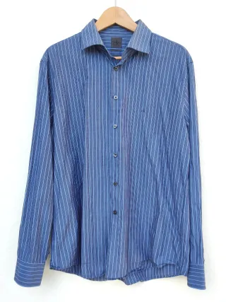 Camisa de hombre de manga larga con un diseño de rayas verticales. Calvin Klein. Talla S. - Cuello abotonado. - Pequeño logo bordado en el pecho. - Utilizada en muy pocas ocasiones.