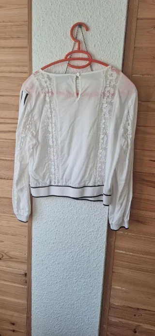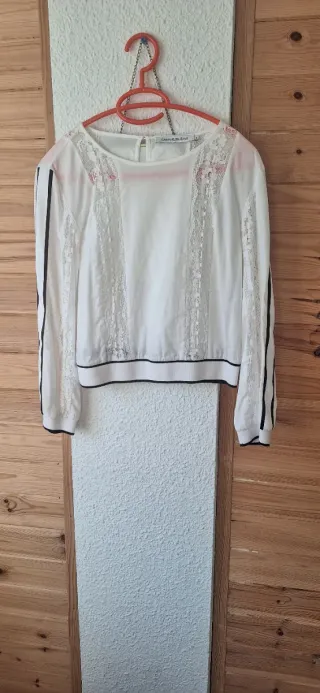 Elegante camisa de manga larga de Calvin Klein Jeans. - Diseño con detalles de encaje en el frente. - Mangas con franjas laterales en contraste. - Ribete en cuello y puños.