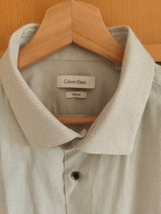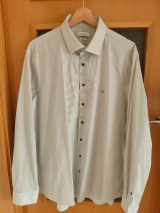 Camisa de manga larga de la marca Calvin Klein. Practicamente sin usar. Ademas, por la compra regalo polo de la misma marca, color y talla, al que habria que darle algun producto para quitar dos marcas. - Corte slim fit. - Cuello con botones. - Color verde oliva.