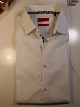 Camisas: HUGO BOSS T.42 sin estrenar Slim Fit. Easy Iron. RALPH LAUREN T.39 amplia (parece 41). Fitted. Non Iron 1 uso. HUGO BOSS T.41 Slim Fit. 1 uso. CALVIN KLEIN. T.41. Slim Fit. Muy poco usada. Como nueva Envio disponible.
