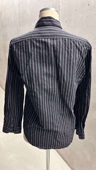**Envíos en 24h en días laborables** Rayas grises y azules sobre blanco. Muy buen estado. Conserva todos los botones originales, incluso uno de repuesto. Excelente confección en tejido mezcla de algodón y elastano. Id 224
