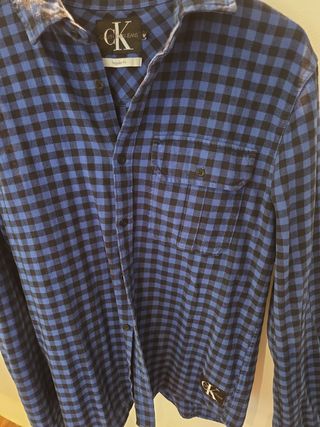 Camisa de cuadros de manga larga. - Diseño a cuadros en azul y negro. - Logo de Calvin Klein en la parte inferior. En perfecto estado . Le va pequeña.